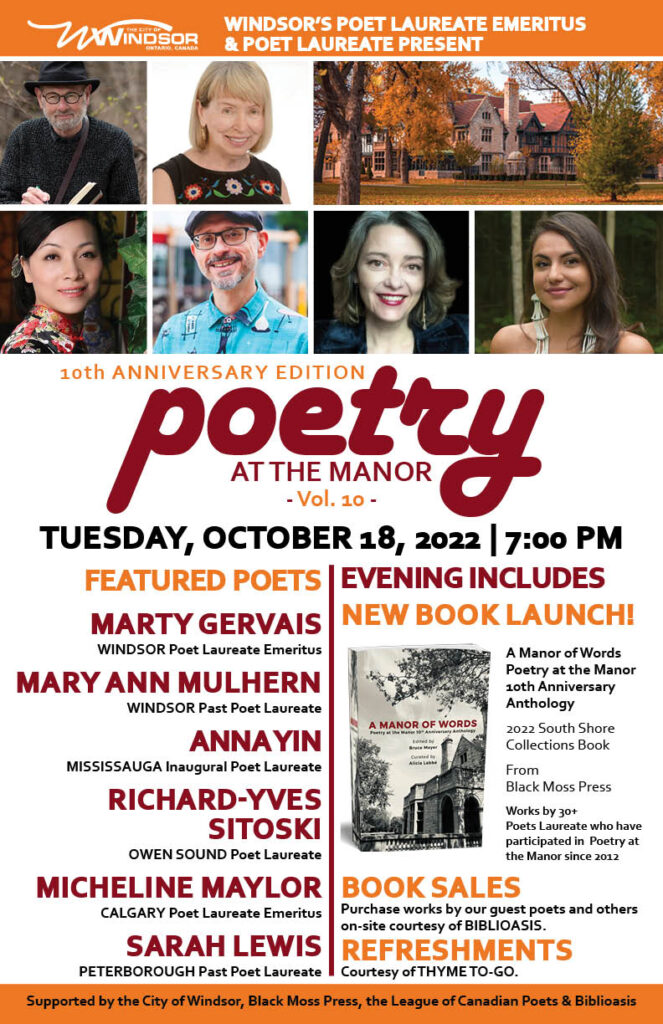 This new anthology celebrates 10 years of Poetry at the Manor, the unique poetry event at Windsor’s historic Willistead Manor. This anthology brings together the work of poets from across the country who have read to standing-room-only crowds in the
