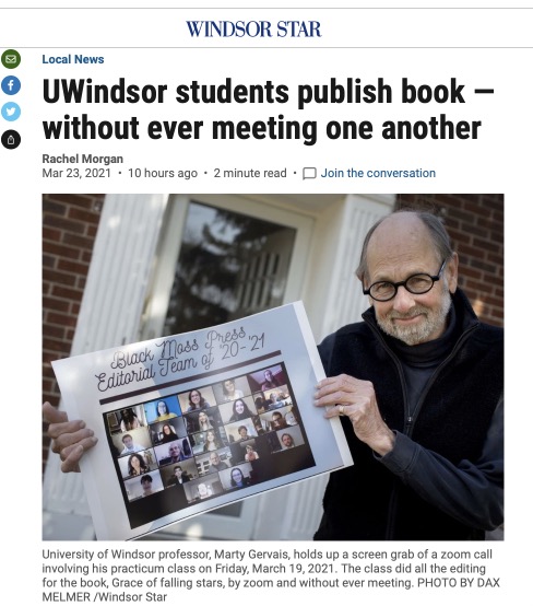 If you’re not familiar with the publishing practicum class at the University of Windsor, it’s an excellent class led by Marty Gervais in which students publish a book themselves and launch it at the end of term. The University of