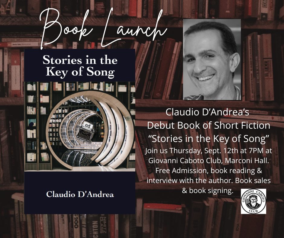 Black Moss Press is proud to present “Stories in the Key of Song”, Claudio D’Andrea’s debut work of short fiction. Please join us Thursday Sept 12th at 7PM, at the Caboto Club, to launch this amazing collection of stories.